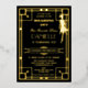 Personalise this luxe vintage art deco Great Gatsby roaring 20s theme 30th birthday party real foil invitation easily and quickly, simply press the Edit Using Design Tool button to further re-arrange and format the style and placement of the text. All text is editable. Featuring a chic art deco frame and black and gold colour scheme. Matching items available in store! (c) The Happy Cat Studio.