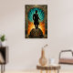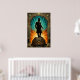 A classic portrait of Jazz Age sophistication and mystery. This striking artwork features a black silhouette of a gentleman in a top hat and formal coat, holding a cane while standing confidently upon a tiered Art Deco pedestal. Framed by a radiant golden sunburst that transitions into a deep teal archway, this piece captures the timeless glamour of a 1920s evening. Perfect for a modern office, home bar, or as a statement piece in a minimalist interior.