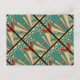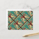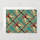 Vintage design with Art Deco influence. Images almost Southwestern in style. Colours include red, turquoise and cream.