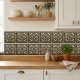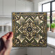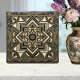 Add a touch of celestial charm to your decor with this stunning Art Deco ceramic tile. The design features a captivating central starburst motif surrounded by intricate geometric patterns in rich navy blue, deep green, and radiant gold. The interplay of sharp lines and curves, set on a classic ivory backdrop, creates a visually dynamic and elegant statement piece. This tile is an ideal choice for those looking to infuse their living spaces with a sense of historical grandeur and artistic flair, perfect for accent walls or backsplashes.