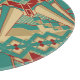Fun pattern with a Southwestern flair. Dark Red, Aqua and cream in a pattern of triangular and art deco images.