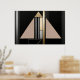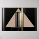 Elevate your space with this sophisticated geometric art. Symmetrical shapes in deep black, metallic gold, and beige create an Art Deco-inspired composition. Precise lines and luxurious contrast bring balance and modernity. Ideal for premium branding, executive offices, and high-end interior decor.