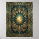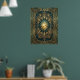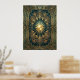 Art Deco Ginkgo Leaf Sunburst Poster | Gold Teal