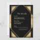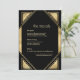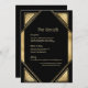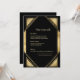 Embracing a palette of rich gold and deep black, the card evokes the lavish glamour of the Great Gatsby era, infusing the design with an air of opulence and grandeur. The use of gold accents adds a touch of prestige, while the geometric patterns pay homage to the iconic Art Deco motifs of the 1920s. These elements come together harmoniously to create a visually stunning composition that captures the imagination and transports guests to a bygone era of sophistication and extravagance.