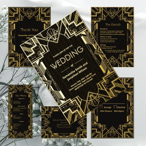 Art Deco Glamorous Gold on Black Foil Wedding FoilDesigned by Clyde Coles