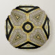 Unique Art Deco abstract round cushion with dark warm tones in a geometric pattern. Bold gold and black on taupe simmer texture background. Each side has the same design BUT in a different perspective of design. It's like getting two for 1 cushion!. » Enhance your bedroom, lounge or meditation room with unique and alternative art.designs » by webgrrl.biz