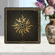 Art Deco Gold Sunburst Compass Graphic Black Tile
