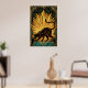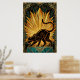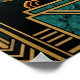 A sleek black feline stretches gracefully against a magnificent golden sunburst. Featuring sharp geometric rays and a deep teal marble pedestal, this 1920s-inspired masterpiece brings a bold architectural energy to any modern interior or gallery wall.