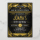 Introducing this absolutely stunning Gatsby era birthday invitation. Presented in art deco style to reflect the design and energy of the decade. Whether you are a dashing bootlegger or a racy flapper, this breathtaking invitation will bring the glitz and the glamour to your celebration. Part of our eye catching new range of foil invitations.So we will meet you at the speakeasy for a dance or two because this party is going to be the bee’s knees!