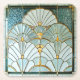 Pretty paper coasters with an art deco image of fans, abstract flowers in shades of green and gold.