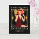 Send birthday greetings in twenties fashion with this Art Deco style design with an illustration of a lady with red hair in a burgundy dress holding a mirror and set typography Happy Birthday Gorgeous. Easily personalise your recipient’s name at the bottom and your message inside. The black background can be changed to another color if you so wish via the Click to Customize Further option.