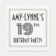This elegant and 1920s-1930s style inspired nineteenth birthday celebration paper napkin design features a customisable name, a fancy art deco style inspired number “19th”, the message “BIRTHDAY PARTY!”, and a border pattern consisting of lines. Paper napkins like these might be used at a party held in celebration of somebody’s nineteenth birthday. [~Z0000613]
