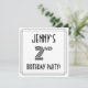 The front of this elegant and 1920s/1930s style inspired second birthday celebration invitation card design features an editable name, an intricate art deco look inspired number “2nd”, the message “BIRTHDAY PARTY!”, and a multi-line border. The back features personalised details about the event, such as the date, time, location, and any other information that may be relevant. Luxurious, stylish, customisable invitations like these might be used to invite attendees to a birthday party/gathering being held to honour somebody’s 2nd birthday. [~Z0000614]