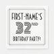 This elegant thirty-second birthday celebration/party paper napkin design features a personalised name, a fancy art deco look inspired number “32nd”, the message “BIRTHDAY PARTY!”, and a multi-line border. Paper napkins like these might be used at a birthday party for somebody who is celebrating their thirty second birthday. [~Z0000613]