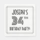 This stylish and 1920s-1930s style inspired thirty-fourth birthday celebration paper napkin design features an editable name, an intricate art deco look inspired number “34th”, the message “BIRTHDAY PARTY!”, and a multi-line border. Stylish birthday themed paper napkins like these might be used at a birthday party in celebration of somebody’s 34th birthday. [~Z0000613]
