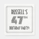 This 1920s/1930s style inspired forty-seventh birthday celebration/party paper napkin design features a customisable name, an intricate art deco style inspired number “47th”, the message “BIRTHDAY PARTY!”, and a multi-line border. Stylish paper napkins like these might be used when hosting a party for somebody in celebration of their forty seventh birthday. [~Z0000613]
