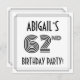 The front of this 1920s-1930s style inspired sixty-second birthday party/celebration invitation card design features a custom name, an intricate art deco look inspired number “62nd”, the message “BIRTHDAY PARTY!”, and a multi-line border. The back features personalised details about the event, such as the date, time, venue/location, and any other information that may be relevant. Luxurious, elegant, editable invitations like these might be used to invite attendees to a birthday party/gathering being held to honour somebody’s 62nd birthday. [~Z0000614]