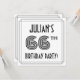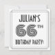 The front of this stylish and 1920s/1930s style inspired sixty-sixth birthday party/celebration invitation card design features a personalised name, an intricate art deco look inspired number “66th”, the message “BIRTHDAY PARTY!”, and a multi-line border. The back features personalised details about the event, such as the date, time, location/venue, and any other information that may be relevant. Luxurious, elegant, customised invitations like these might be used to invite guests to a birthday party/gathering being held to honour somebody’s 66th birthday. [~Z0000614]