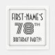 This elegant seventy-eighth birthday celebration/party paper napkin design features a customisable name, an intricate art deco style inspired number “78th”, the message “BIRTHDAY PARTY!”, and a multi-line border. Stylish birthday themed paper napkins like these might be used at a party in celebration of somebody’s seventy eighth birthday. [~Z0000613]