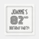 This 1920s/1930s style inspired eighty-second birthday party paper napkin design features a customisable name, a fancy art deco style inspired number “82nd”, the message “BIRTHDAY PARTY!”, and a border pattern consisting of lines. Birthday themed paper napkins like these might be used at a birthday party celebrating somebody’s 82nd birthday. [~Z0000613]
