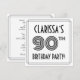 The front of this 1920s-1930s style inspired ninetieth birthday celebration invitation card design features an editable name, an intricate art deco style inspired number “90th”, the message “BIRTHDAY PARTY!”, and a multi-line border. The back features personalised details about the event, such as the date, time, place, and any other information that may be important. Stylish, luxurious, customised invitations like these might be used to invite guests/attendees to a birthday party/gathering being held to celebrate somebody’s 90th birthday. [~Z0000614]