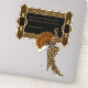Beautiful sticker for your laptop, tablet or other large surface - features Art Deco style brown skinned woman with fan and leopard print gown, fancy frame and empowering phenom woman quote on black background. Main colours: gold, bronze, black