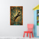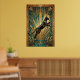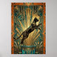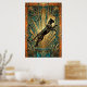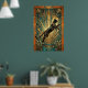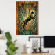 This dynamic art deco poster features a leaping black cat captured mid‑air above a teal marble pedestal, with bold gold fan rays exploding in the background. Intricate geometric patterns and a rich black‑gold‑teal palette create a powerful vintage 1920s vibe. Ideal for modern living rooms, studios or hallways, it’s a perfect statement piece for cat lovers and art deco fans.