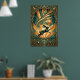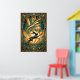 Art Deco Leaping Rabbit Gold & Teal Art Poster