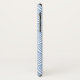 A stylish light blue art deco fish scale pattern Barely There iPhone X Case with a tan quatrefoil badge you can personalise by easily adding your monogram and name. This is part of the Little Boy Blue Fishcale Warm Sand Monogram Spring Collection.