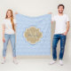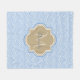 A stylish light blue art deco fish scale pattern fleece blanket with a tan quatrefoil badge you can personalise by easily adding your monogram and name. This is part of the Little Boy Blue Fishcale Warm Sand Monogram Spring Collection. Choose from 3 sizes.