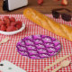 Paper party plates in a reproduction of a stylised, Art Deco lily, wallpaper pattern - a soft gradient of deep to light orchid / violet, accented with white, on a deep amethyst purple background