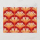 Postcard in a reproduction of a stylised, Art Deco lily, wallpaper pattern - a gradient of deep flame orange to white, accented with mustard gold, on a deep tangerine orange background