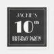 This 1920s-1930s style inspired tenth birthday celebration paper napkin design features a custom name, an intricate art deco look inspired number “10th”, the message “BIRTHDAY PARTY!”, and a multi-line border. The background is coloured black by default, but it can be customised to a different colour, if desired. Luxurious birthday themed paper napkins like these might be used at a birthday party in celebration of somebody’s tenth birthday. [~Z0000612]