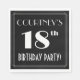 This elegant eighteenth birthday party/celebration paper napkin design features a customisable name, an intricate art deco look inspired number “18th”, the message “BIRTHDAY PARTY!”, and a multi-line border. There is a black-coloured background by default, but it can be customised to a different colour, if desired. Luxurious birthday themed paper napkins like these might be used at a birthday party for somebody who is celebrating their 18th birthday. [~Z0000612]