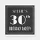 This elegant thirtieth birthday celebration/party paper napkin design features an editable name, a fancy art deco style inspired number “30th”, the message “BIRTHDAY PARTY!”, and a multi-line border. There is a black-coloured background by default, but it can be customised to a different colour, if desired. Paper napkins like these might be used when celebrating somebody’s 30th birthday. [~Z0000612]