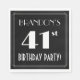 This stylish and 1920s-1930s style inspired forty-first birthday celebration/party paper napkin design features an editable name, an intricate art deco look inspired number “41st”, the message “BIRTHDAY PARTY!”, and a border pattern consisting of lines. It features a black-coloured background by default, but it can be customised to a different colour, if desired. Paper napkins like these might be used at a birthday party for somebody who is celebrating their 41st birthday. [~Z0000612]