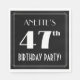 This elegant forty-seventh birthday celebration paper napkin design features a personalised name, a fancy art deco look inspired number “47th”, the message “BIRTHDAY PARTY!”, and a border pattern consisting of lines. The background is coloured black by default, but it can be customised to a different colour, if desired. Paper napkins like these might be used at a birthday party for somebody who is celebrating their forty seventh birthday. [~Z0000612]