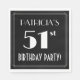 This Roaring Twenties inspired fifty-first birthday celebration/party paper napkin design features a personalised name, a fancy art deco style inspired number “51st”, the message “BIRTHDAY PARTY!”, and a border pattern consisting of lines. It features a black-coloured background by default, but it can be customised to a different colour, if desired. Paper napkins like these might be used at a party held in celebration of somebody’s 51st birthday. [~Z0000612]