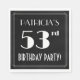 This elegant fifty-third birthday celebration/party paper napkin design features a customisable name, an intricate art deco style inspired number “53rd”, the message “BIRTHDAY PARTY!”, and a border pattern consisting of lines. It has a black-coloured background by default, but it can be customised to a different colour, if desired. Stylish birthday themed paper napkins like these might be used at a party for somebody who is celebrating their 53rd birthday. [~Z0000612]