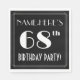 This 1920s/1930s style inspired sixty-eighth birthday celebration/party paper napkin design features a personalised name, a fancy art deco style inspired number “68th”, the message “BIRTHDAY PARTY!”, and a multi-line border. It features a black-coloured background by default, but it can be customised to a different colour, if desired. Stylish birthday themed paper napkins like these might be used at a birthday party celebrating somebody’s sixty eighth birthday. [~Z0000612]