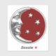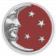Sticker in a classic Art Deco Moon and Stars design in brushed silver with an enamel look, dark Chinese red background