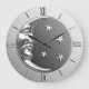 Classic Art Deco moon and stars design clock in brushed silver, with a hematite stone / grey enamel look background