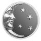Classic Art Deco moon and stars design in brushed silver with an enamel look haematite grey / grey background