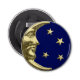 Classic Art Deco moon and stars design in brushed metallic gold, with an enamel look midnight blue / indigo background