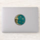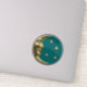 Sticker in a classic Art Deco moon and stars design in brushed gold with an enamel look teal / peacock green background