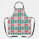 This apron has an art deco design of hexagons, pentagons, squares, diagonal lines that look like a mosaic.