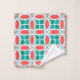 This towel set has an art deco design of hexagons, pentagons, squares, diagonal lines that look like a mosaic.