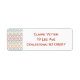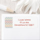These return address labels have an art deco design of upside down Vs in retro colours of orange, teal, gold, black, red, brown, and grey.