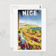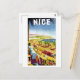 A Paris Lyon Marseille (PLM) 1920s-1930s vintage art deco travel advertisement, promoting the good life in Nice on the French Riviera: palm trees, beautiful woman, wonderful classic cars, the sea, the mountains. (The Alps)