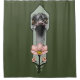 A cute ostrich portrait with a pink floral design drawn in an art deco all in backdrop of green